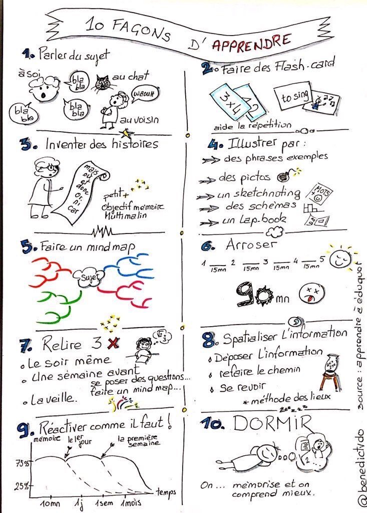 Pour des détails sur les méthodes : https://blog.betterstudy.ch/10-methodes-pour-reviser-memoriser-et-apprendre-efficacement