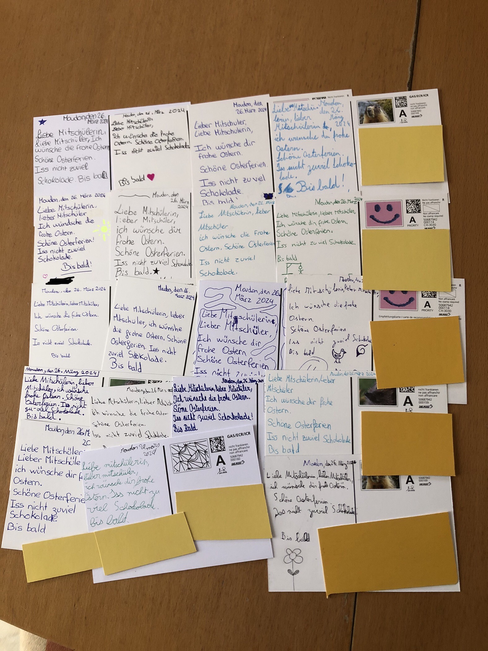9GK Postkarte PE Ressource N°8090 partagée le 28.03.24 à 20:09 - Mise à jour le 16.12.25 à 14:57 Écrire une carte postale puis l'envoyer à un autre élève. Télécharger img_4874.jpeg Commentaires :