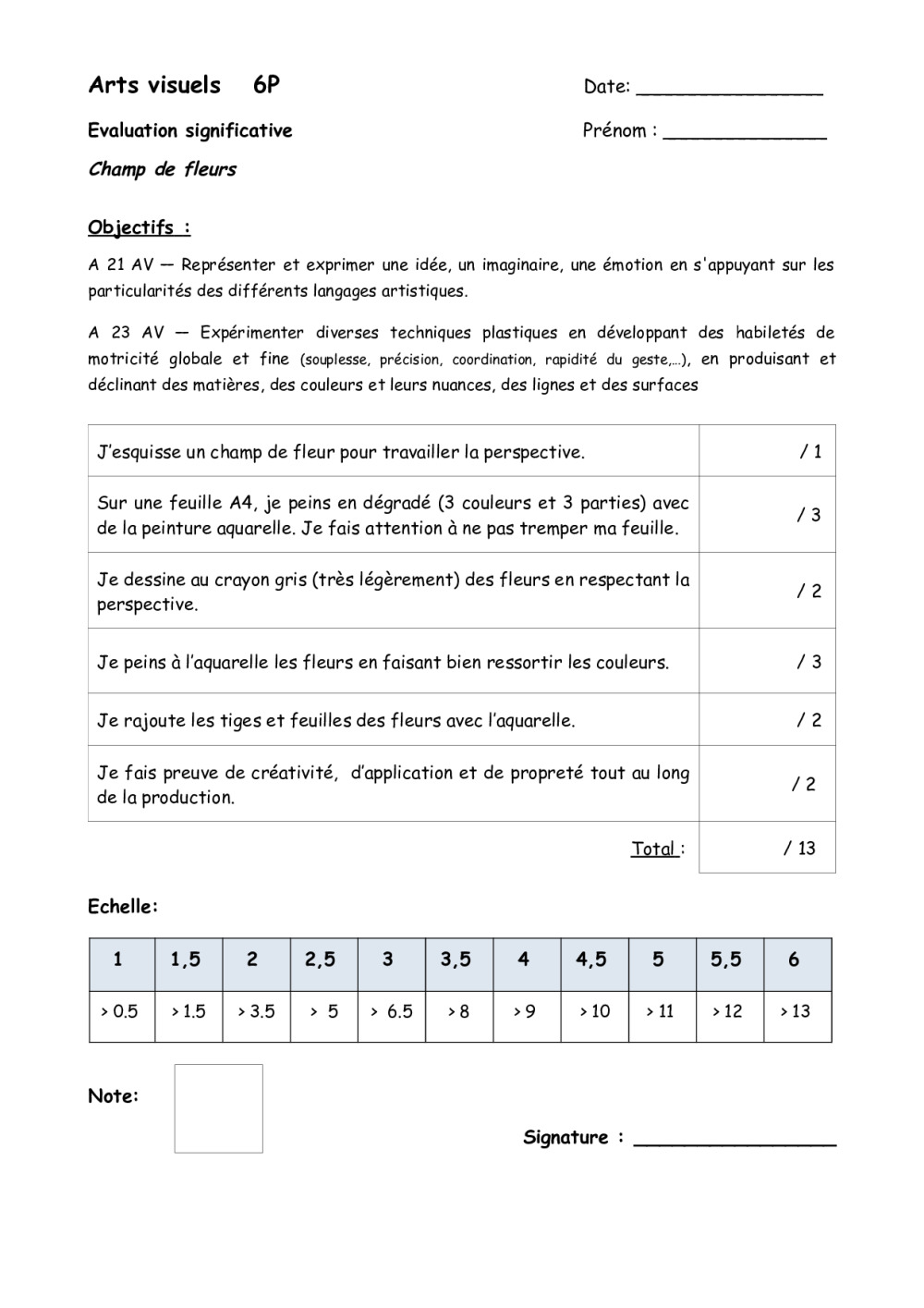 Dessin d'un champ de fleurs à faire avec une classe de 5-6P. Technique utilisée: aquarelle