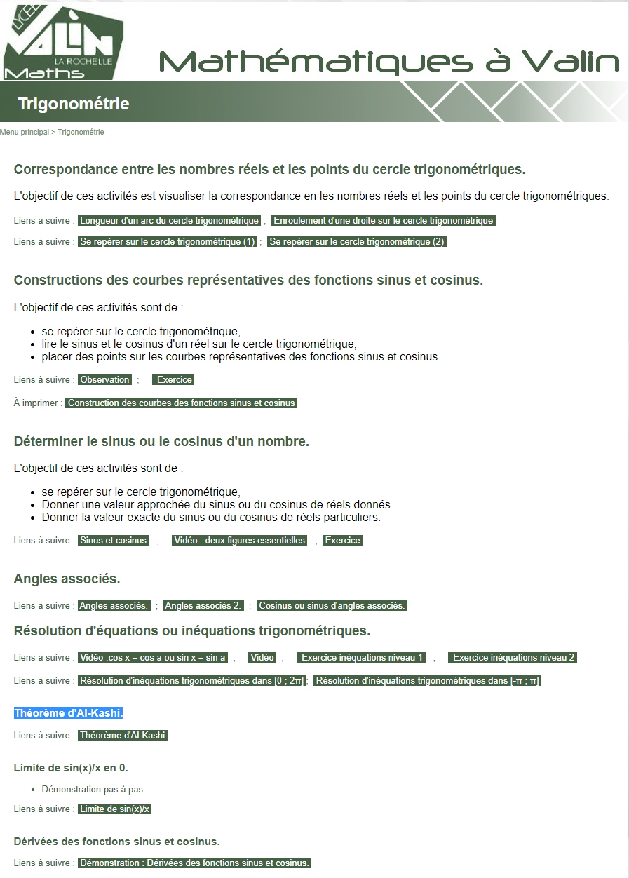 Exercices en ligne, construit à l'aide de Geogebra, du Lycée René Josué Valin - La Rochelle - Académie de Poitiers.