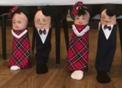 "Habiller" les genoux en personnages ! Très sympa ! Pour spectacle... Ou pour moments de musique....le prof seul a les genoux en personnages, les enfants font face et copient les mouvements.