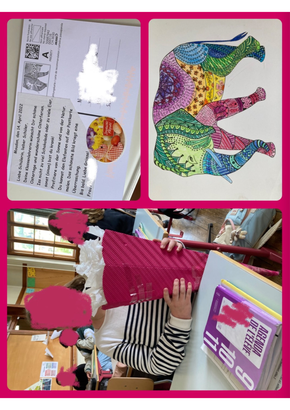 J'ai écrit une carte postale aux élèves en allemand et ils avaient la possibilité de colorier un éléphant et de recevoir un prix pour le meilleur.