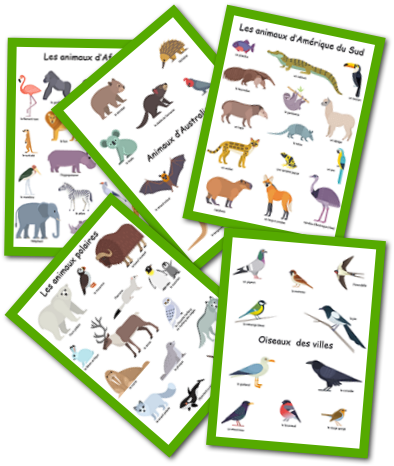 Planches d'animaux et noms à imprimer.