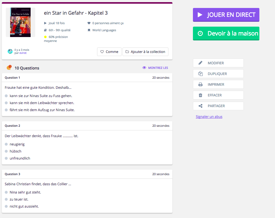 Voici un quiz Kahoot! utile pour réviser ses verbes modaux allemands. Ce quiz sur les "Modalverben" comporte des questions de base et essentielles pour l'apprentissage de ces derniers. Je joins le lien d'entraînement avant de débuter le quiz effectif sur les verbes modaux allemands: https://create (...)