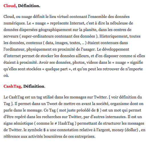 Ce dictionnaire ou lexique permet de donner les définitions clé, en usage sur le web, internet, et les réseaux sociaux.