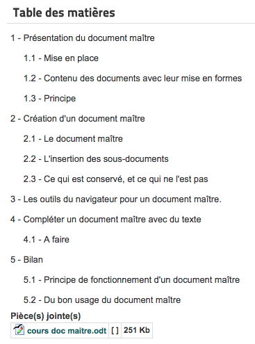 Usage du traitement de texte et de la fonction Document Maître pour les documents longs ou dans le cadre d'un travail de groupe. Le principe est le suivant : Vous travaillez sur votre fichier qui est un sous-document, et lors de la mise en commun, vous créez un document maître qui appellera chaque (...)