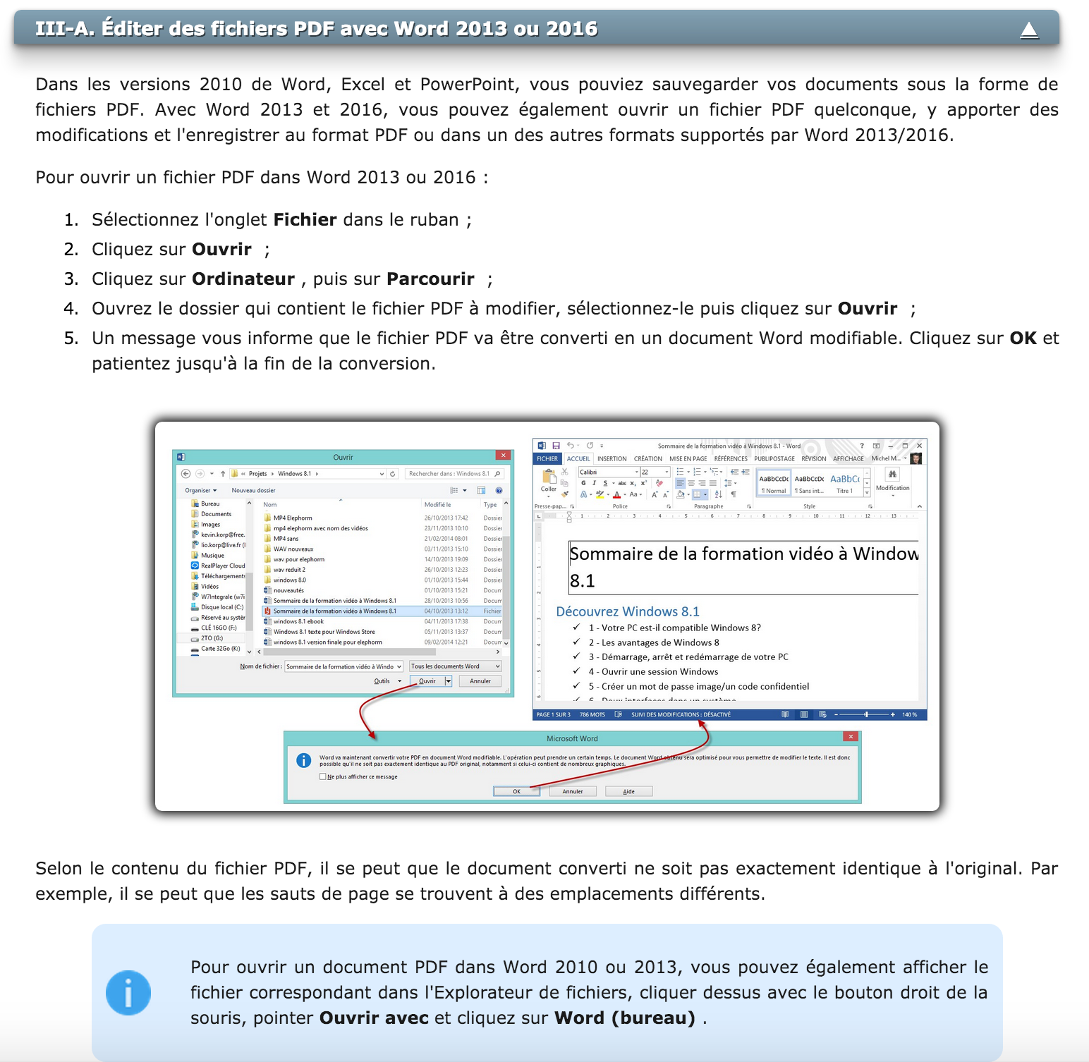 Format PDF : créer, lire et modifier des documents PDF (tutoriel) Dans ce tutoriel, l'auteur explique comment apprendre à créer, lire et modifier des documents PDF par l'intermédiaire des applications utilisées tous les jours. Au fil des sections, il montre comment créer des documents PDF à partir (...)