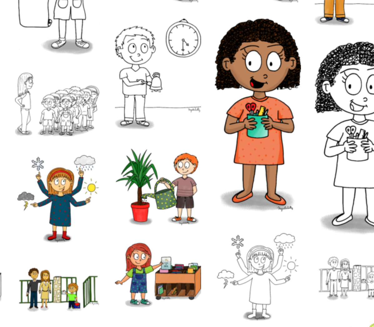 Repéré sur Mysticlolly.fr, des dessins pour illustrer les métiers et responsabilités des élèves, réalisés par l'auteure de ce blog.