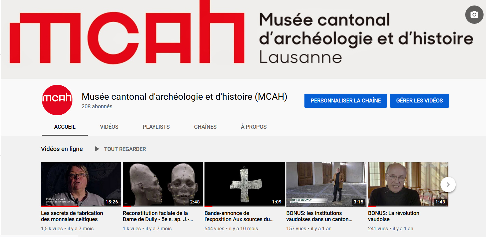Le Musée y propose de nombreuses vidéos sur l'activité de recherche et restauration qui s'y fait. Une série de vidéos intitulées "l'histoire vaudoise en 2 minutes" aborde les caractéristiques saillantes de chacune des grandes périodes de l'histoire vaudoise en 120 secondes.