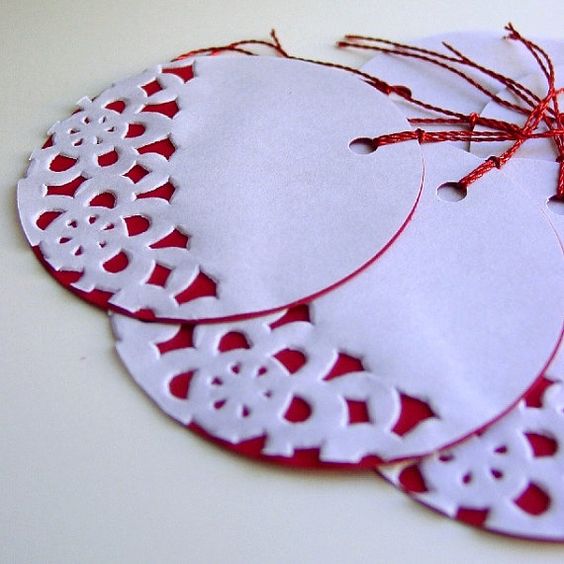 Boules (plates!) à suspendre au sapin. Papier coloré napperon en papier (pâtisserie) Se référer à la photo.....