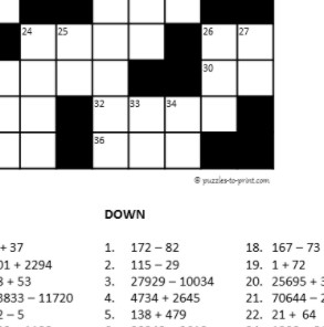 Nombres croisés : calculer oralement et placer les réponses dans un carré ! Cliquer pour imprimer....... Cliquer pour imprimer la solution.