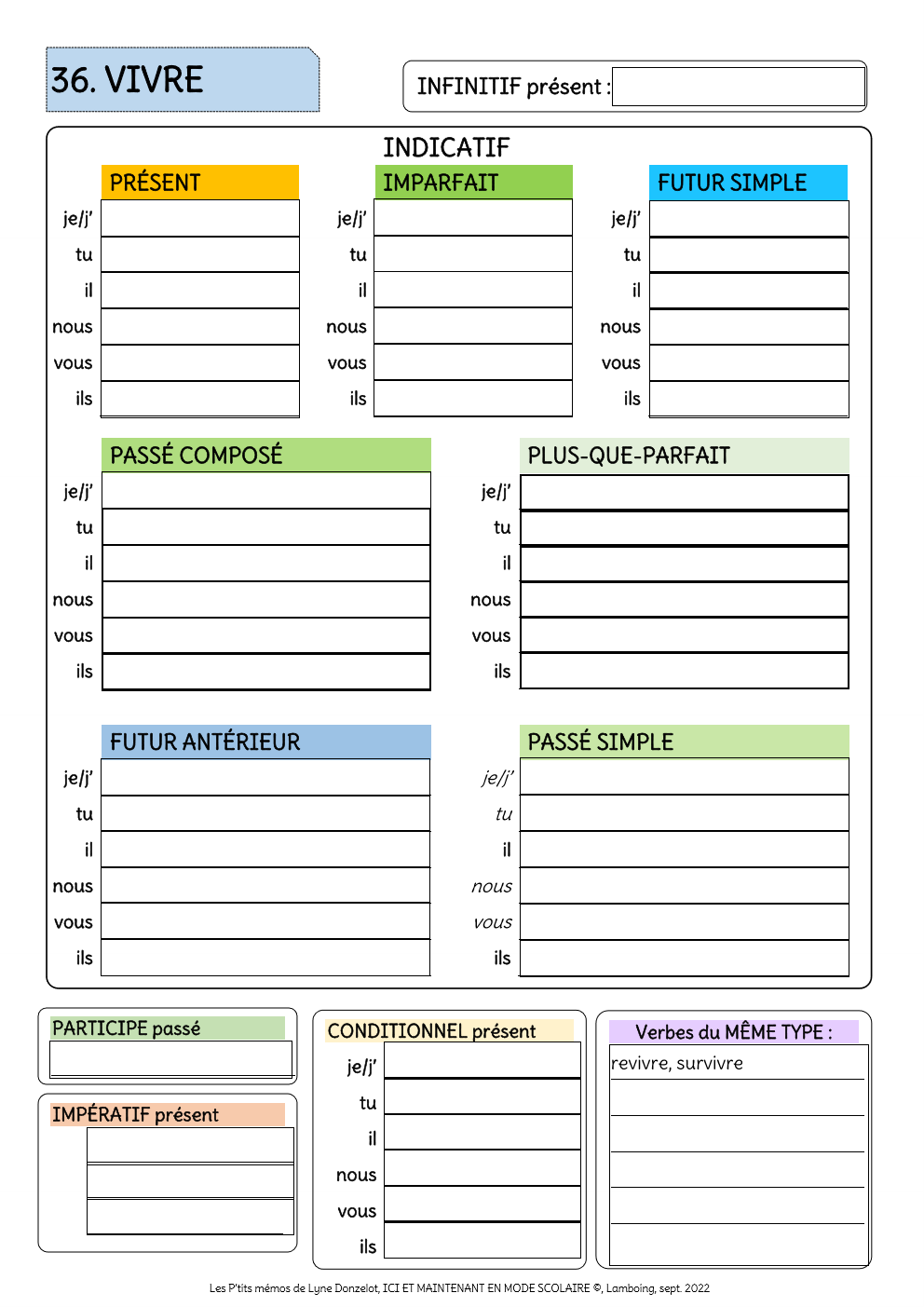 Français - conjugaison : VERBES À TOUS LES TEMPS - LES VERBES COMPLÉTÉS + À COMPLÉTER + TABLEAU + CM