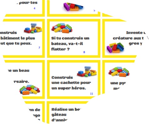 Le but du jeu est de reproduire le modèle mais sous certaines conditions… Un élève A a le modèle sous les yeux et un élève B ne l’a pas, il a la planche vide et les pièces du château mouvant. L’élève A ayant le modèle doit transmettre les informations de codage à l’élève B. Le premier doit être (...)
