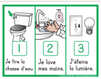 Plusieurs types de consignes illustrées, afin d'aider les petits élèves à gérer leurs tâches quotidiennes.
