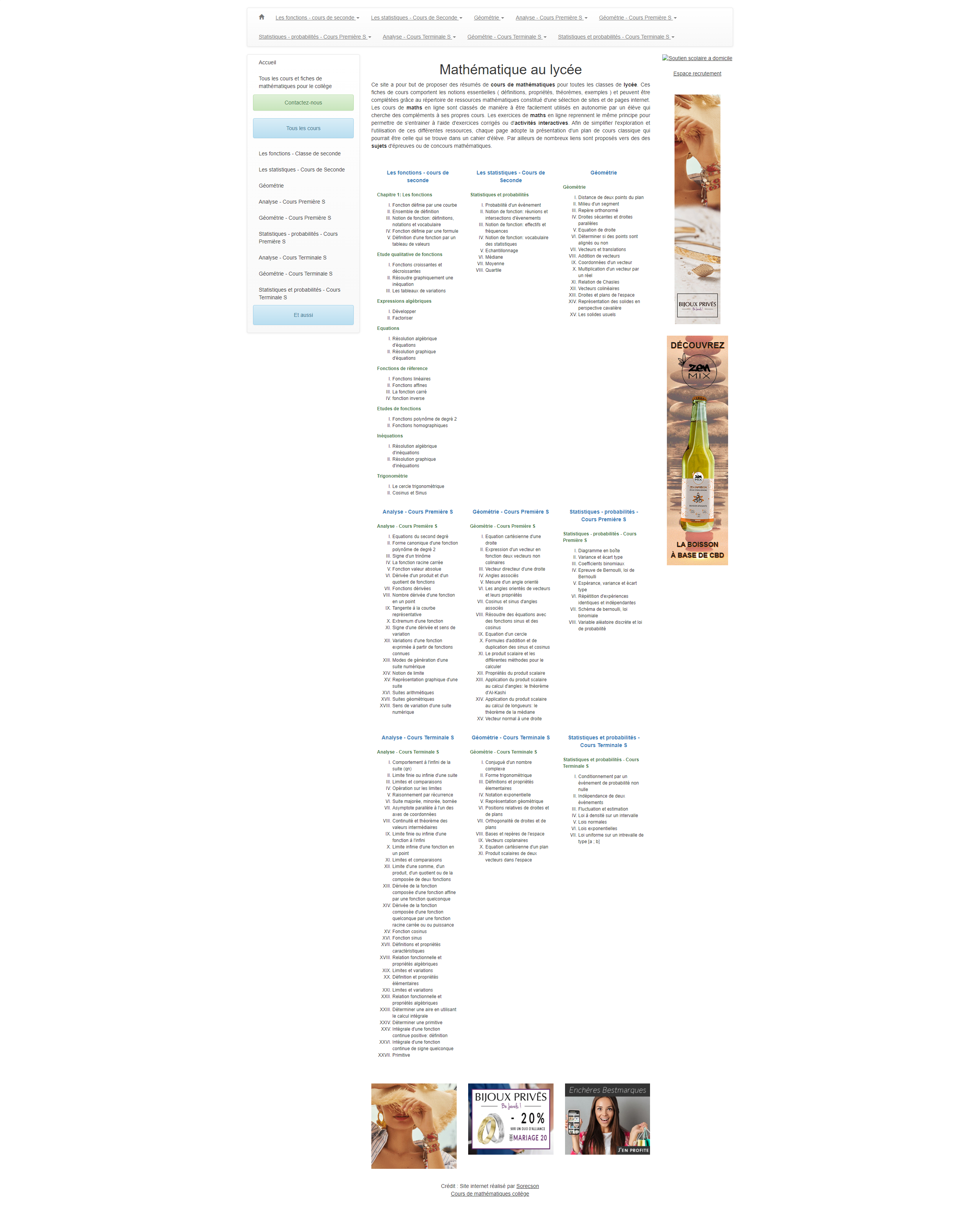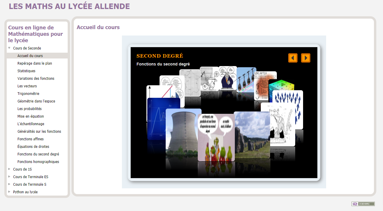 Ce site a pour but de proposer des résumés de cours de mathématiques pour toutes les classes de lycée. Ces fiches de cours comportent les notions essentielles ( définitions, propriétés, théorèmes, exemples ) et peuvent être complétées grâce au répertoire de ressources mathématiques constitué d'une (...)