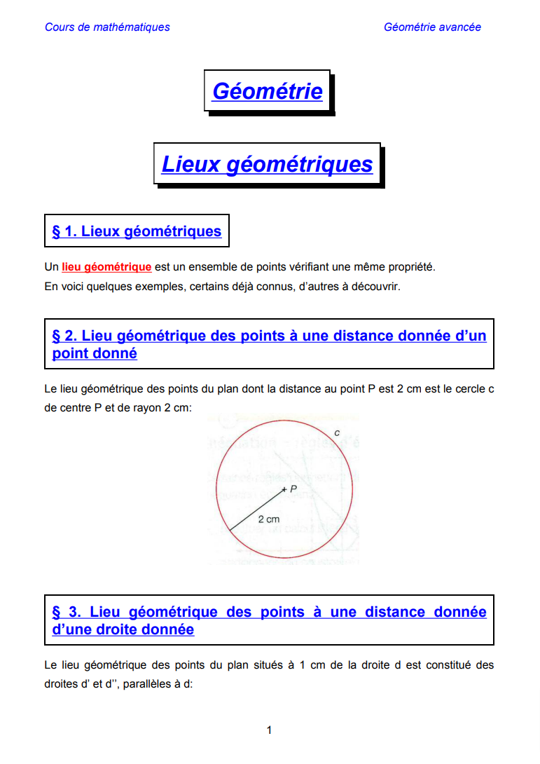 Document contenant une vue d'ensemble de la notion de lieu géométrique abordé au secondaire.