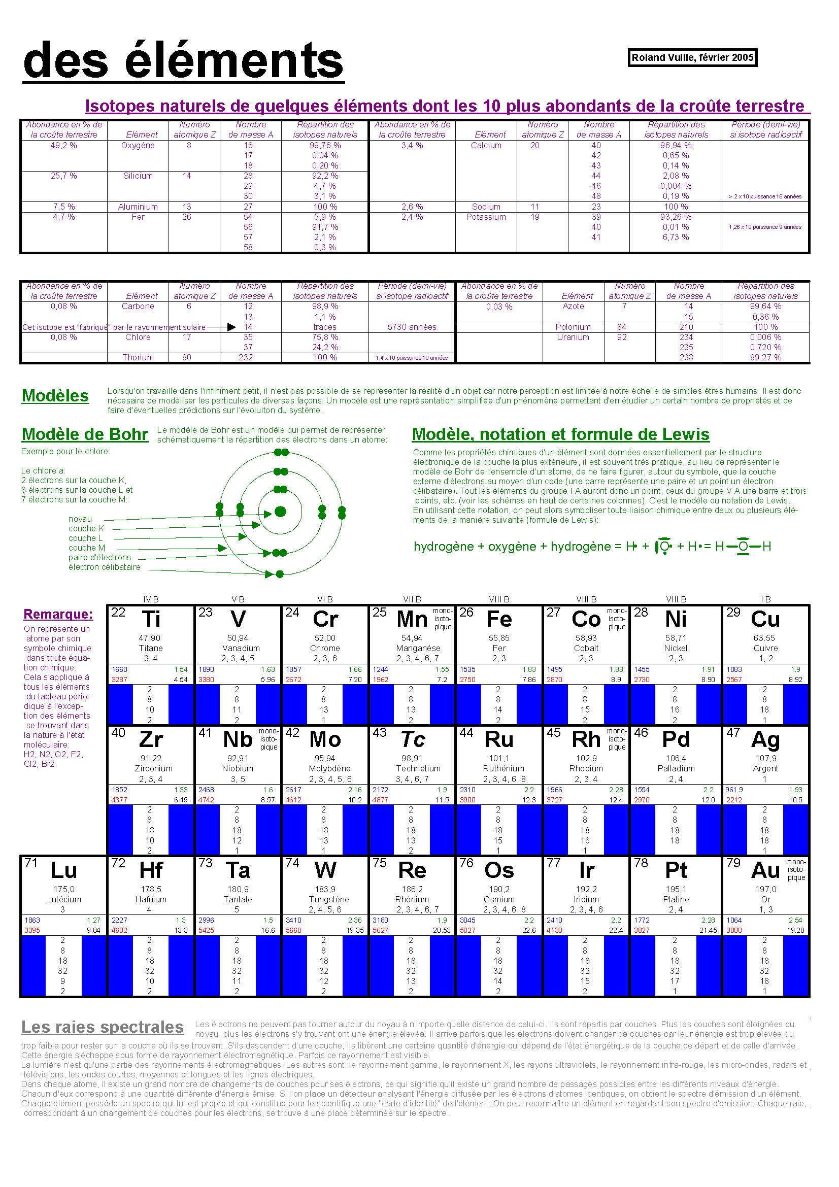 Le tableau périodique des éléments, également appelé tableau ou table de Mendeleïev, classification périodique des éléments ou simplement tableau périodique, représente tous les éléments chimiques, ordonnés par numéro atomique croissant et organisés en fonction de leur configuration électronique (...)