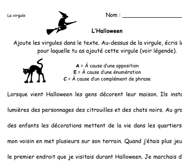 Placer les virgules dans le texte et en faire l'analyse. Contenu : 2 fiches....l'exercice, la fiche réponses.