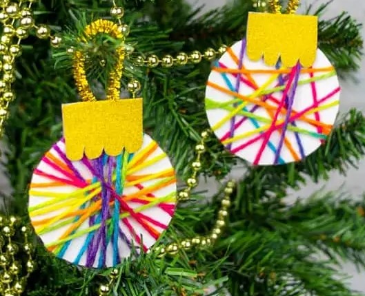 Décoration du sapin : boules de Noël décorées en fils. ...