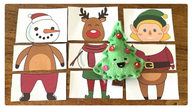 Des puzzles méli-mélo pour amuser les plus petits pendant la période des fêtes. Plastifier chaque petit jeu.
