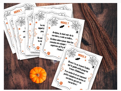 La cocotte en papier d’Halloween Le jeu de l’oie d’Halloween Le Dobble revisité Le jeu de 7 familles Le jeu de quilles des méchants Disney Les puzzles à fabriquer Le jeu de bowling Accroche l’araignée! Le village d’halloween à créer Le maxi coloriage géant