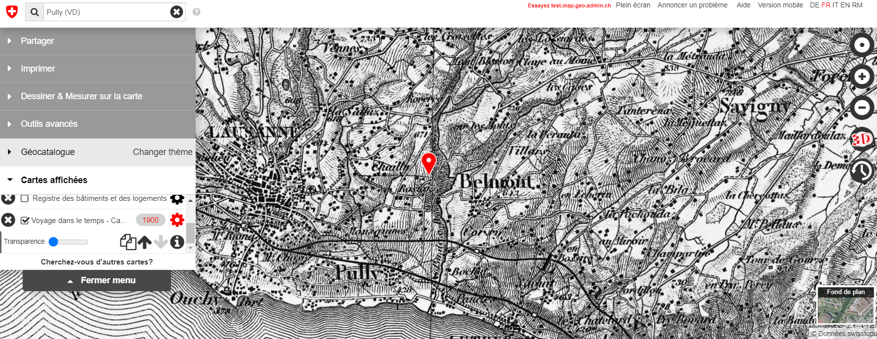 Avec le lien map.geo vous pouvez voyager dans le temps en Suisse. Cet outil vous permet d'analyser des cartes topographiques selon une année choisie (vous pouvez remonter très très loin, vers 1830-50 parfois). Pour se faire, choisissez dans le menu à gauche "voyage dans le temps". Cet outil peut (...)