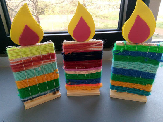 Tissage...autour d'une planchette de bois.... Flamme à double face.