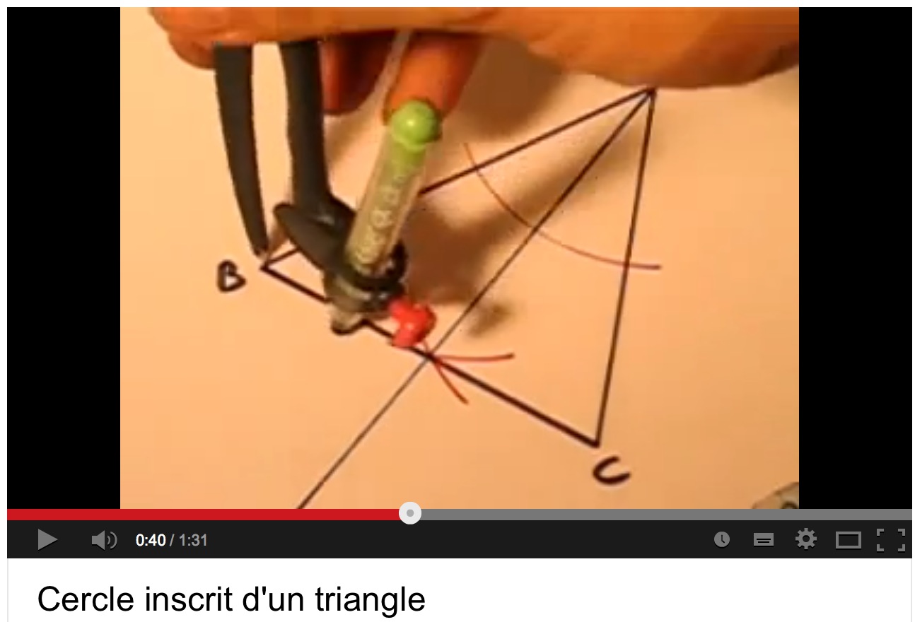 Vidéo spécialement conçue pour permettre à des élèves de réviser à la maison les matières étudiées en classe. Ici : construction du cercle inscrit d'un triangle à la règle, au compas et à l'équerre. PER > > MATHÉMATIQUES > ESPACE > CYCLE 3