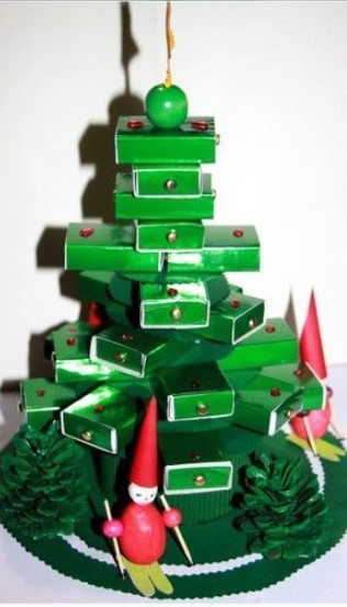 Le sapin en boîtes d'allumettes peut servir de calendrier de l'Avent. Marche à suivre sur site...