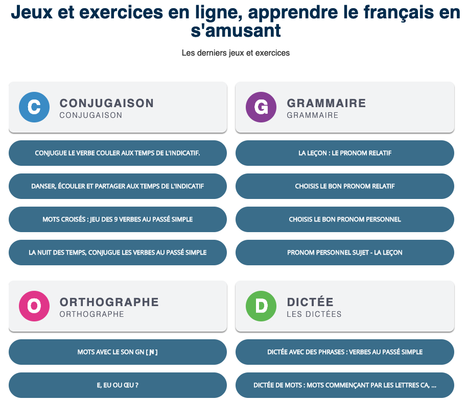 Enseignants de FLS et de Français, vos élèves vont pouvoir tester leurs compétences en ligne avec des exercices en mode "feedback " immédiat: dictées, exercices sur la synonymie, les accords du verbe, l'orthographe, les sons, etc... A utiliser en remplacement des fiches de travail papier. et (...)