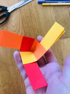 Voilà une petite toupie de papier, il faut la lâcher en hauteur pour la voir tourbillonner!
