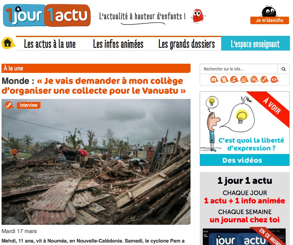 Site d’informations pour les enfants de 7 à 13 ans. Ses journalistes, spécialisés dans la presse pour les plus jeunes, publient tous les jours une actualité détaillée. On y trouve aussi : des outils pédagogiques pour accompagner les enseignants dans leur travaux en classe