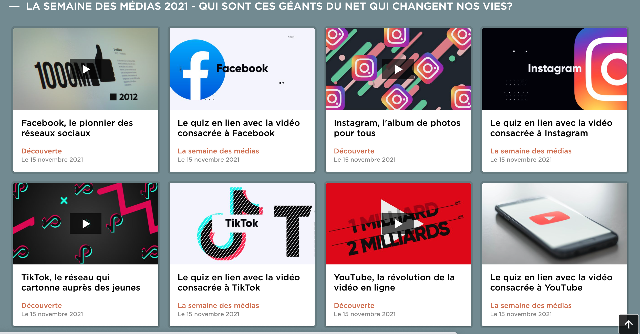 La RTS a réalisé des vidéos sur le thème "QUI SONT CES GÉANTS DU NET QUI CHANGENT NOS VIES ?" pour la semaine des médias. Des vidéos de 3 minutes 30 accompagnées d'un petit quiz ; idéal donc comme transition entre deux activités.
