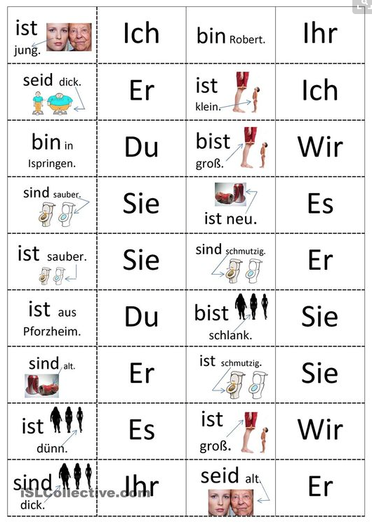 Domino pour entraîner le verbe être en allemand