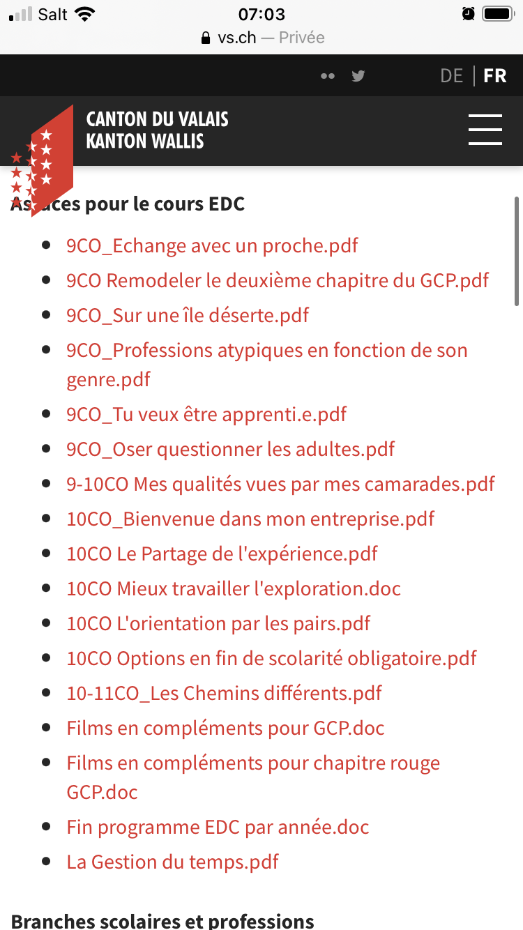Matériel pédagogique Mise à jour