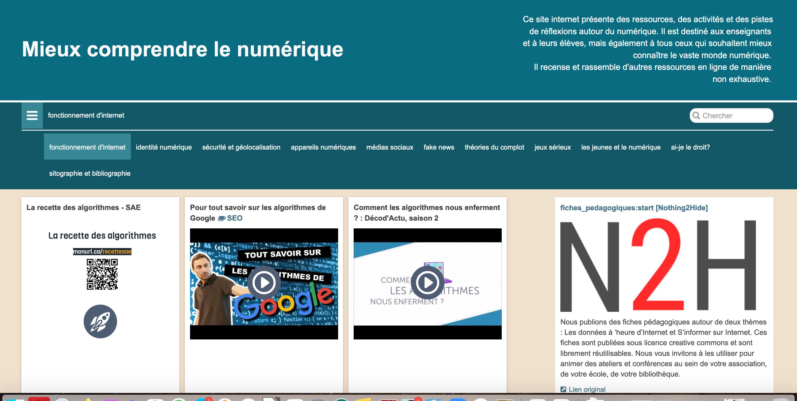 Ce site internet présente des ressources, des activités et des pistes de réflexions autour du numérique. Il est destiné aux enseignants et à leurs élèves, mais également à tous ceux qui souhaitent mieux apprivoiser et connaître le vaste monde numérique. Il recense et rassemble ces ressources en (...)