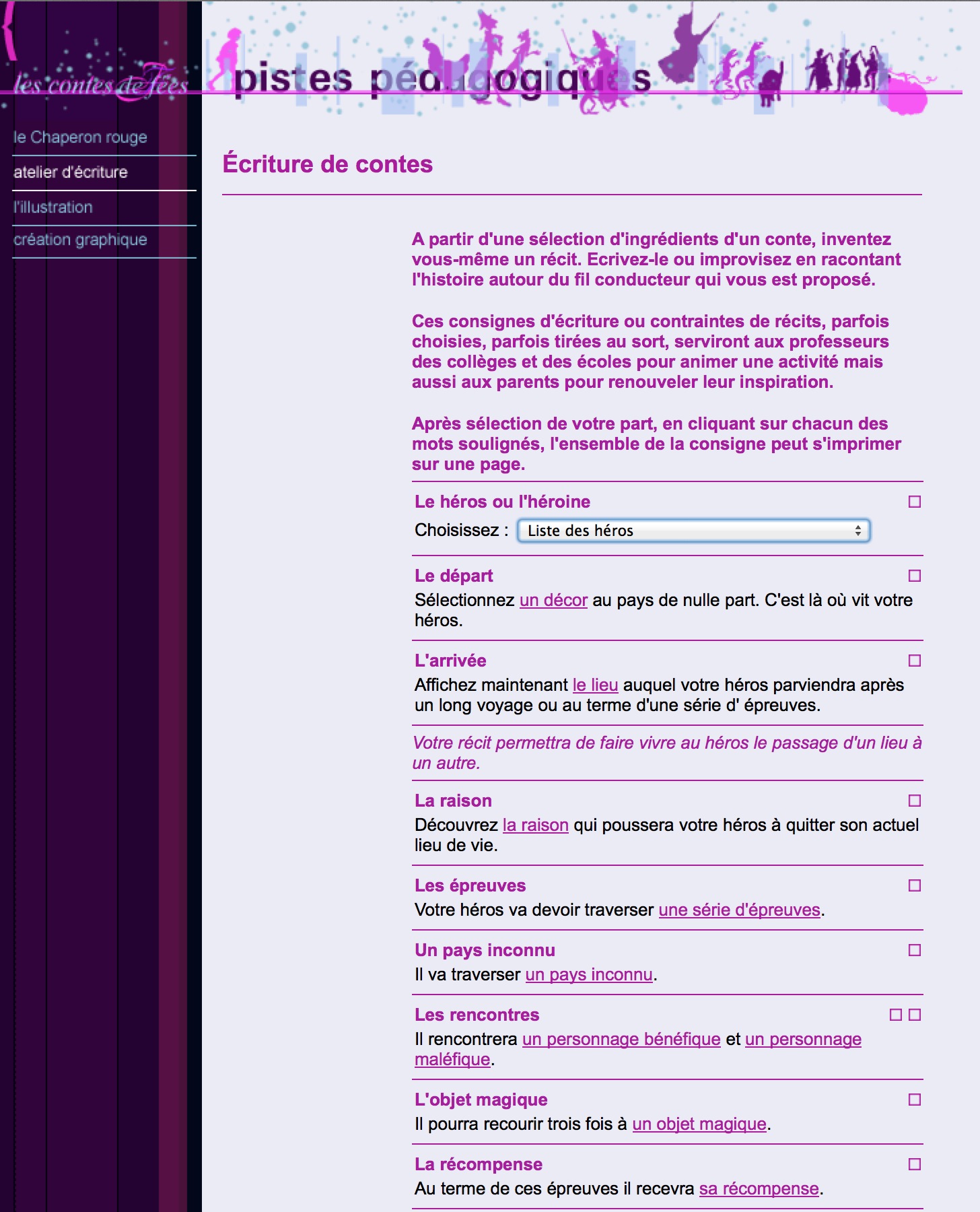 La BNF propose aux élèves de créer leur propre conte. Selon leurs choix, un plan détaillé du conte leur est présenté afin de faciliter la rédaction.