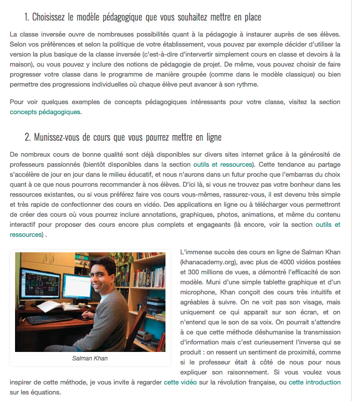 Classe inversée – Conseils et idées (écrit par Florent Berthet) L'approche de la classe inversée est la base de la méthode scientifique : observer, analyser, tester. Le fonctionnement est le suivant : les élèves reçoivent des cours sous forme de ressources en ligne (en général des vidéos) qu’ils (...)