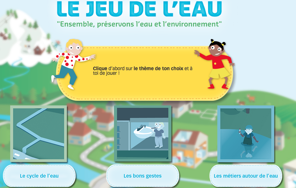 Jeu qui comporte 3 thèmes: filière de l'eau (cycle de l'eau, dans le jeu), bons gestes et métiers autour de l'eau. Ce jeu (thème: bons gestes) a été mis en place en classe comme une introduction à l'écologie. Ensuite, une discussion collective a été menée afin de discuter des propositions pour (...)