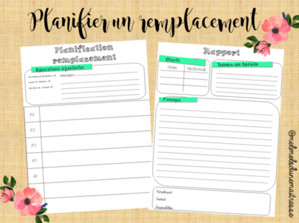 Méli-Mélo d'une maîtresse a créé un document pour la planification d'un remplacement afin que toutes les informations soient claires pour l'enseignant et le remplaçant. Document type à remplir.