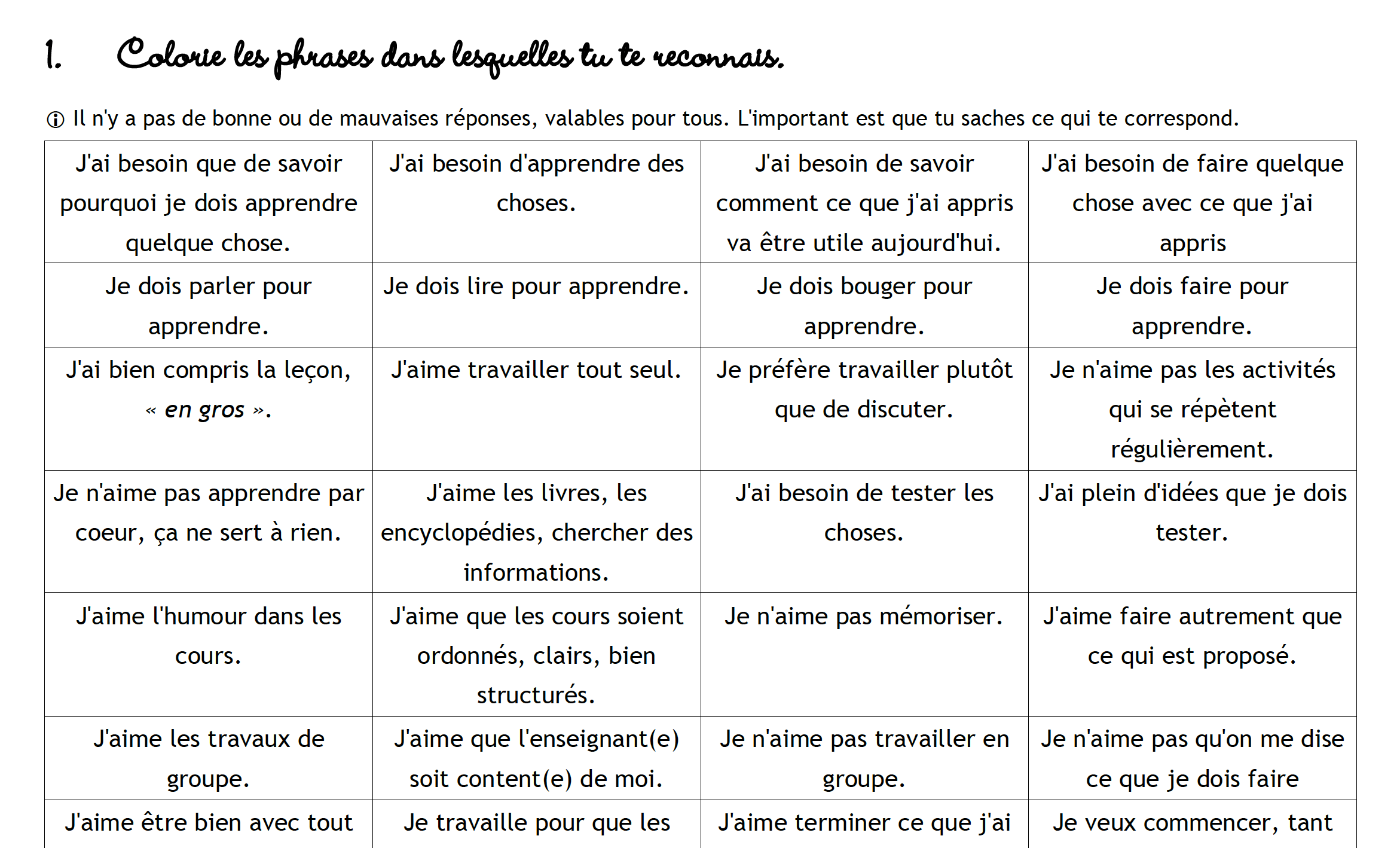 Comment j'aime apprendre ?