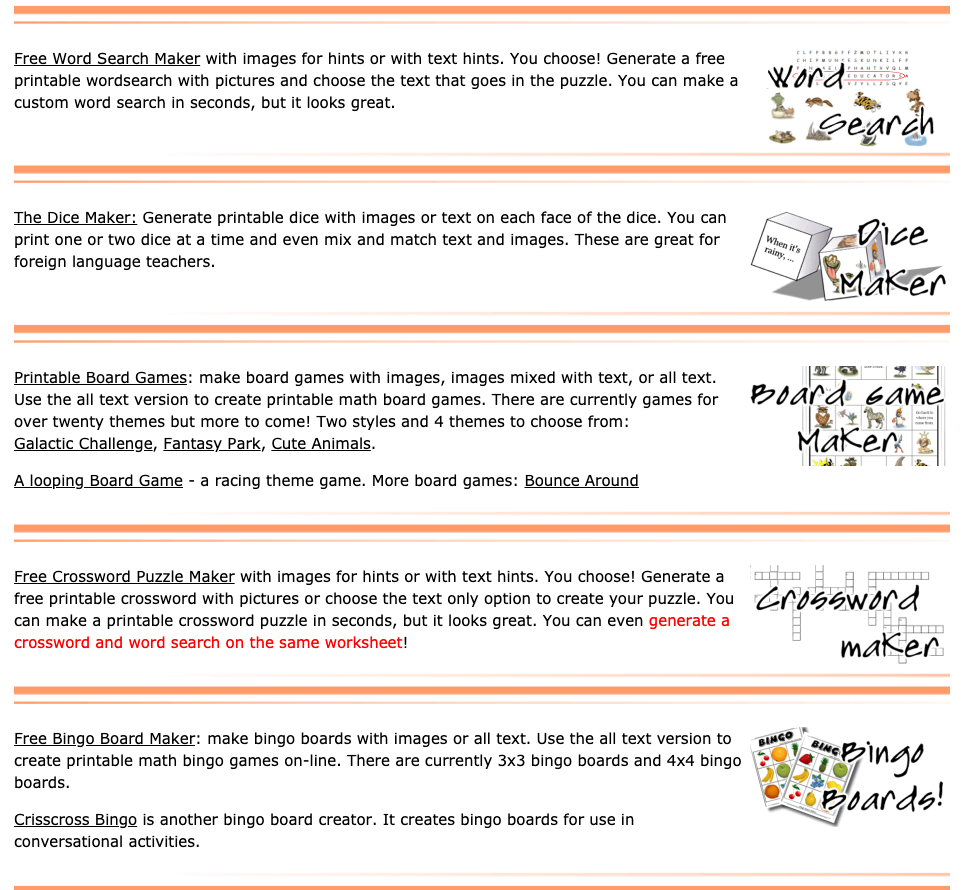 site pour créer des grilles de mots cachés, des bingos, des dés avec des images, des dominos, etc...