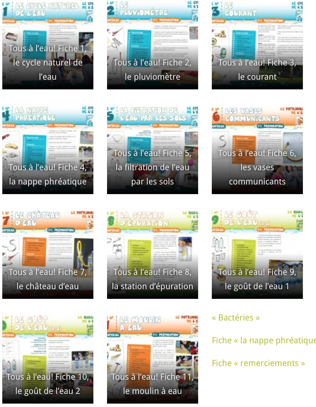 Ensemble de fiches pédagogiques pour la réalisation d'expériences au sujet du cycle de l'eau réalisées par le Contrat de rivières Semois-Chiers (Belgique).