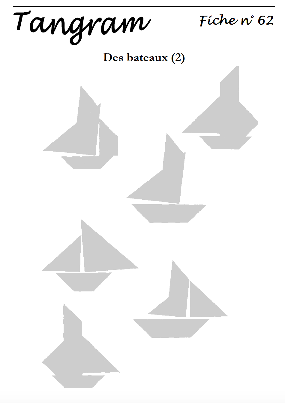 Dossier d'une centaine d'activités de difficulté croissante à effectuer avec des pièces de Tangram (non fournies :).