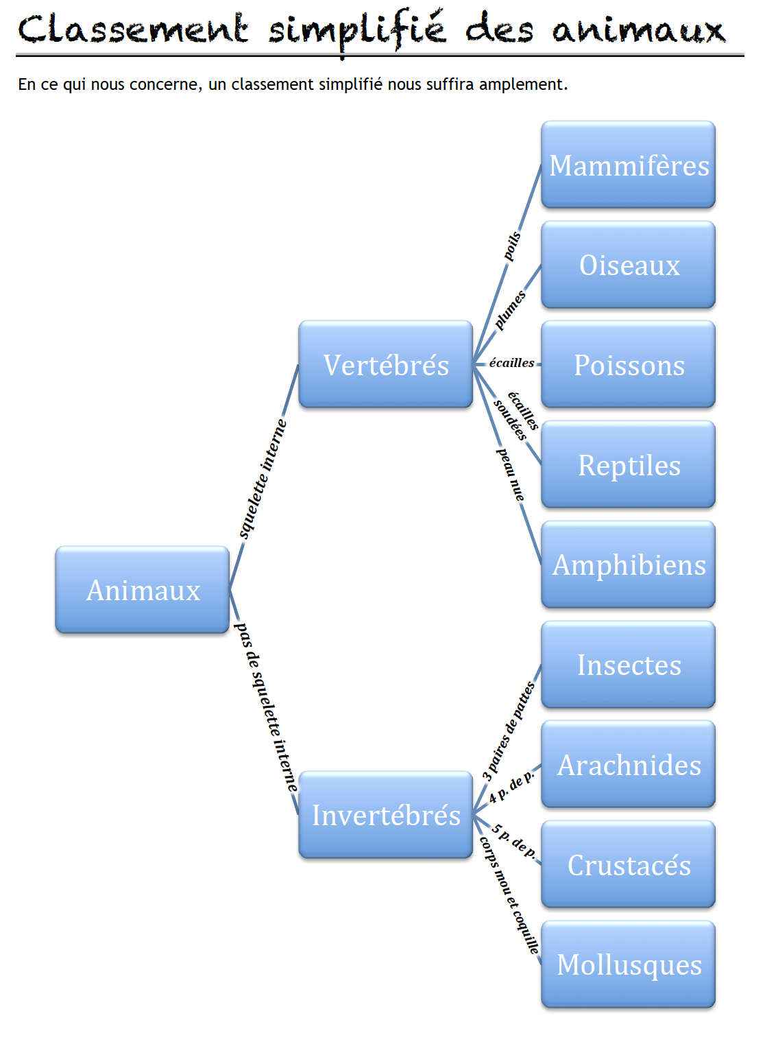 Module complet pour faire découvrir aux élèves le classement des animaux et leur faire comprendre comment cela fonctionne. Documents de travail pour les élèves, synthèse et fiche pour l'enseignant inclus. Remarque: depuis le passage au PER, le temps est compté pour chaque domaine d'apprentissage. Il (...)