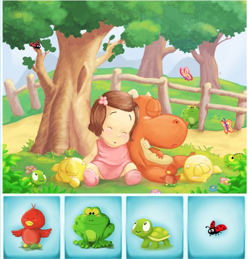 Jeux d'observations: retrouver des éléments dans un dessin. Diverses chansons et jeux sont également en lien avec ces activités.