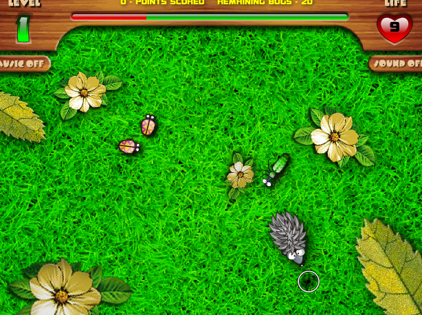Jeu d'éveil pour les tout petits. Un hérisson doit attraper des insectes, bon exercice pour s'entraîner à la manipulation de la souris.