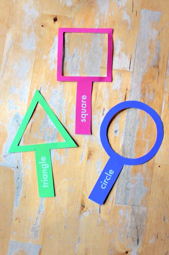 Très sympa..... très visuel. Jetez un œil à la forme des loupes avec vos enfants et parlez des différentes formes. Lisez le nom sur la poignée de chaque verre. Comptez le nombre de côtés de votre forme. Comptez combien de coins. Quelles formes sont similaires? Lesquelles sont différentes ? Ensuite (...)