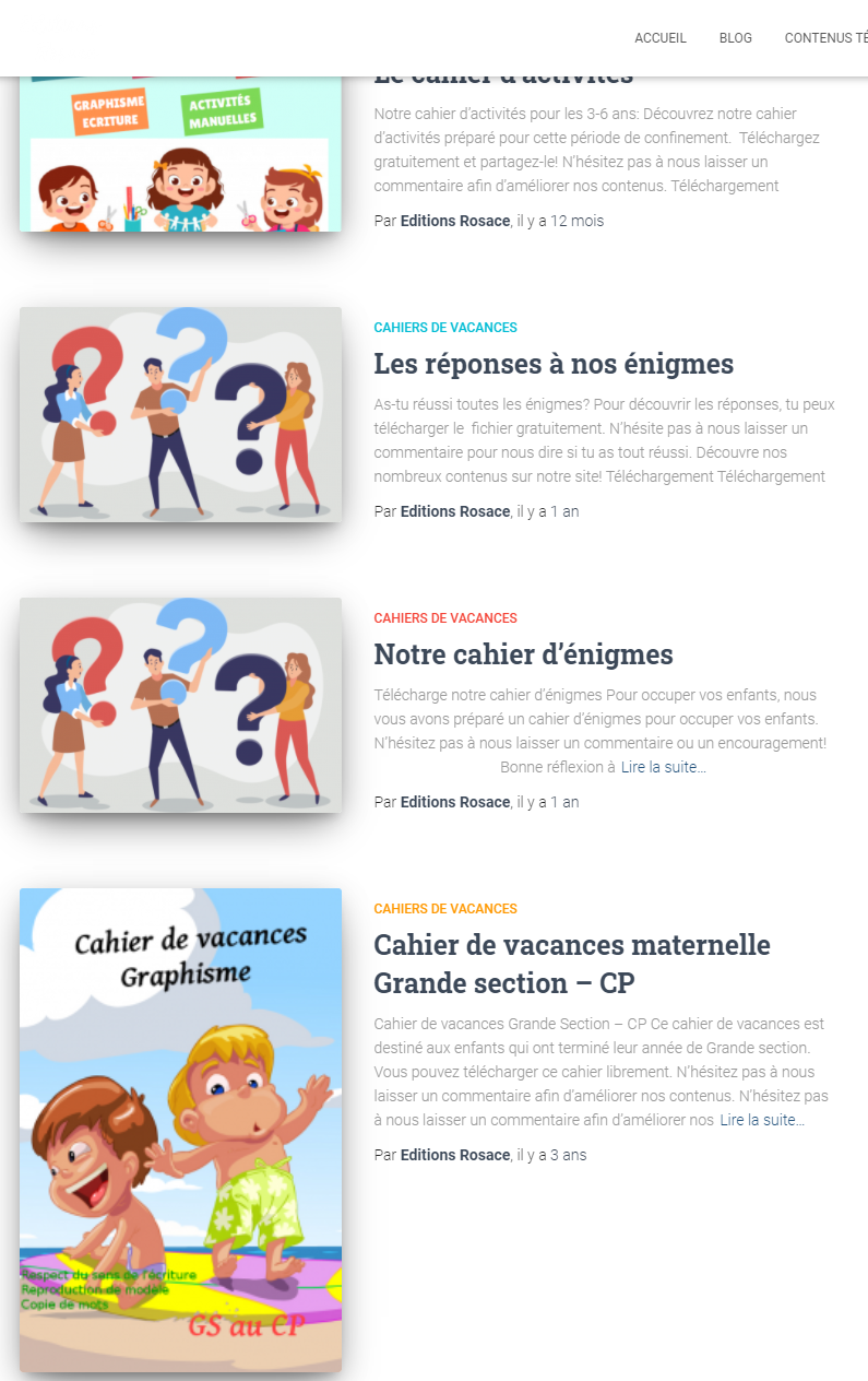 Nombreux cahiers de vacances gratuits pour les 3-6 ans