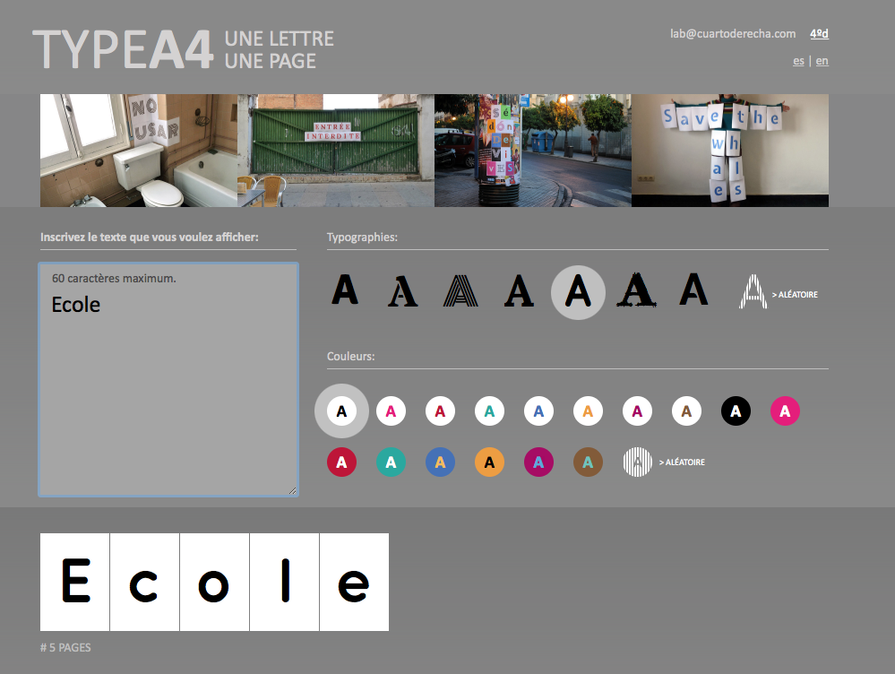 Type A4 est un petit utilitaire en ligne qui vous permet de créer des signalétiques ou des affichages grand format en installant une lettre par page. Ce service en ligne n’a pas besoin d’un long mode d’emploi. Pas besoin de s’inscrire, ni de s’identifier. Il suffit de se rendre sur la page d’accueil (...)
